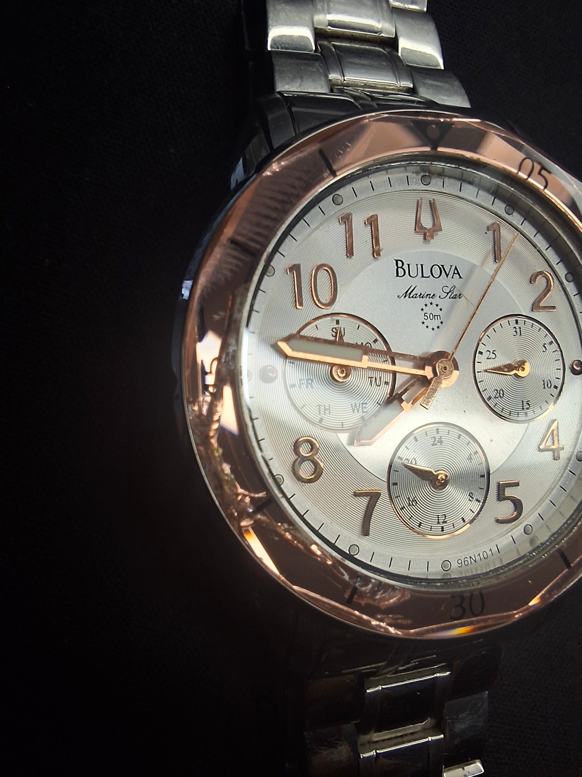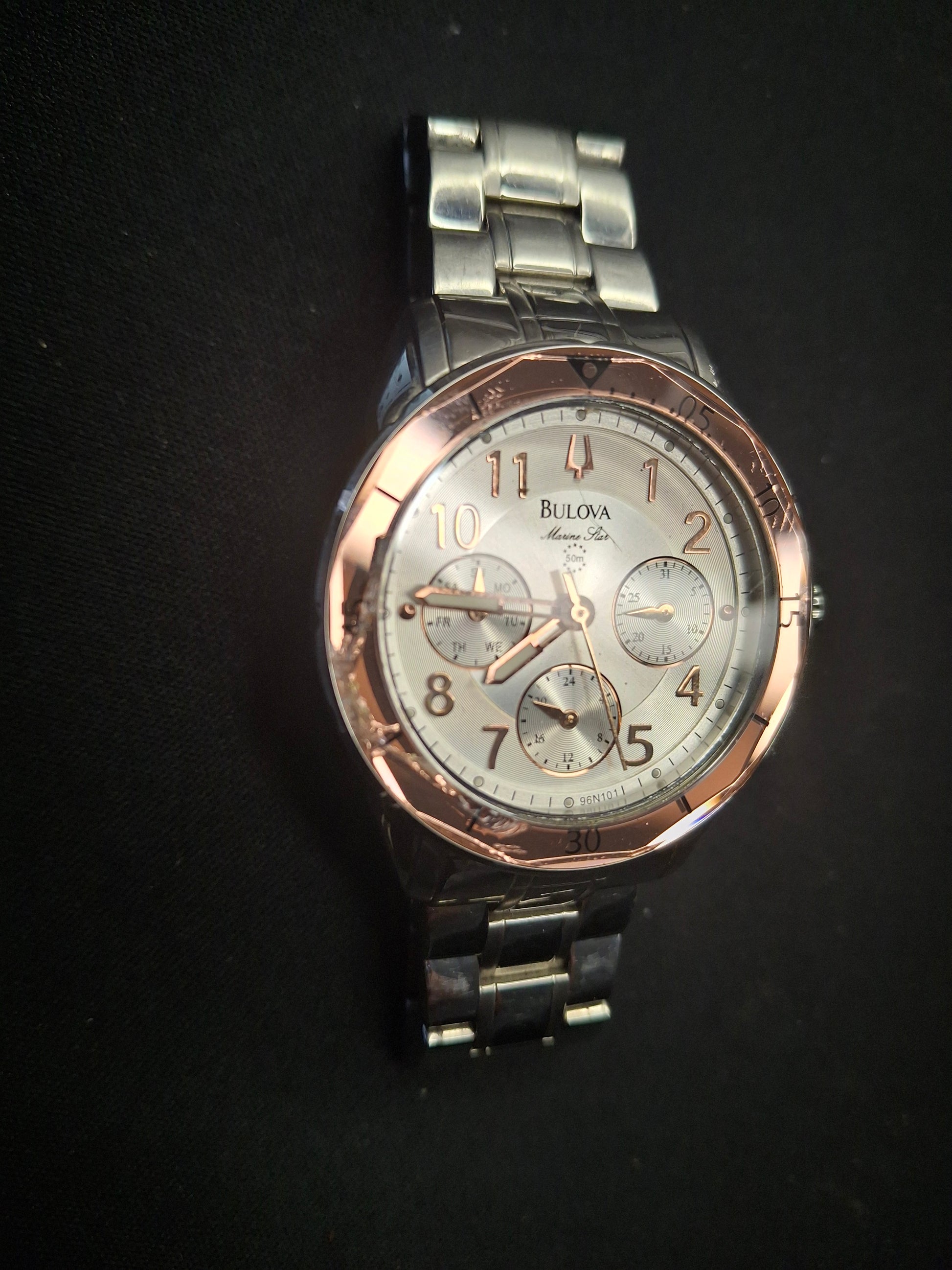 Bulova Women's Marine Star Quartz Silver Stainless Rose Glass Bezel Watch