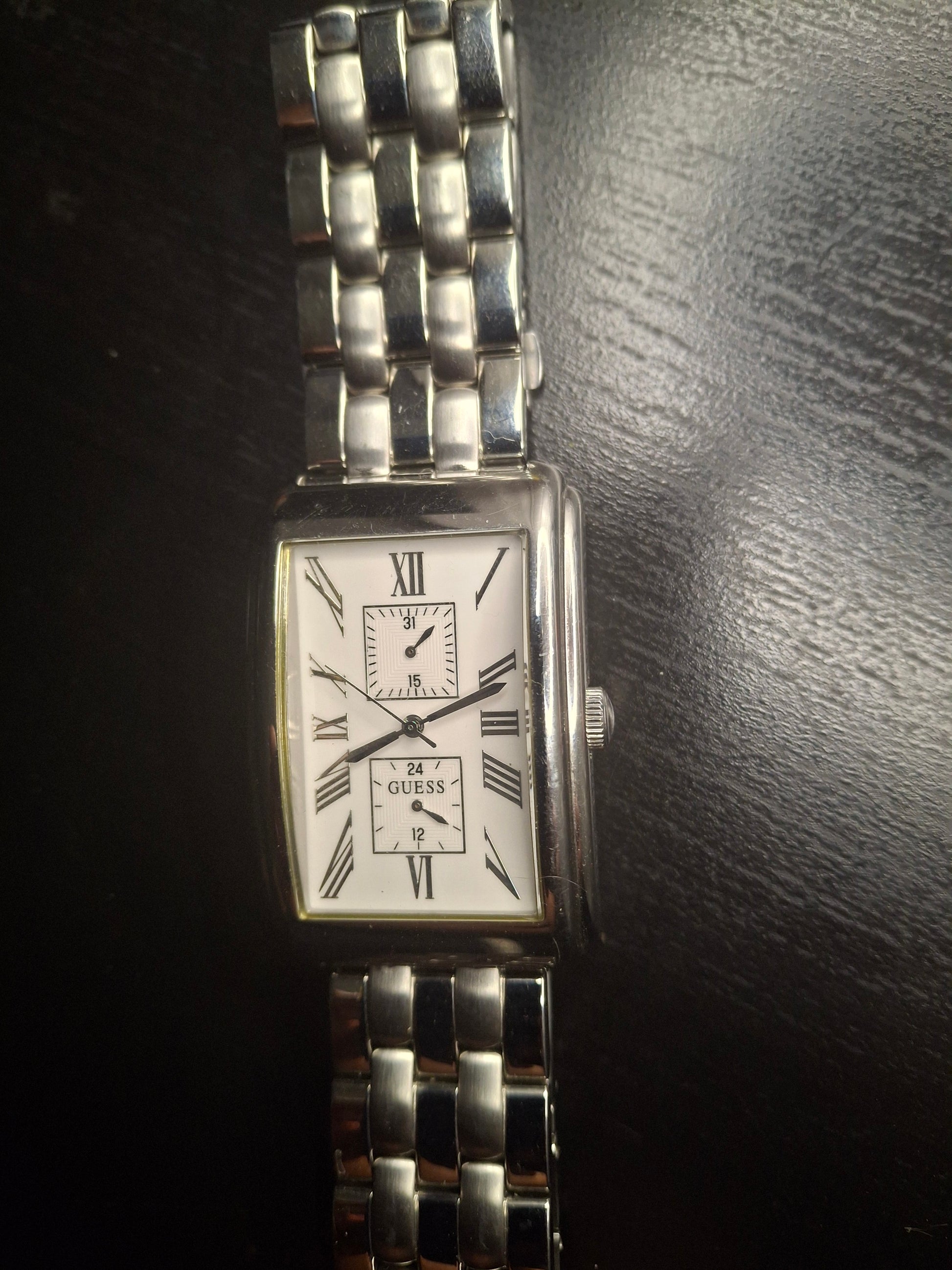 GUESS U11602G1 Men's Watch Stainless Steel Silver Tone New Battery Runs Great